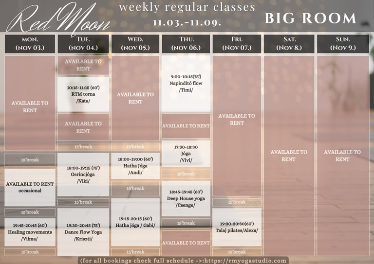 (Állandó recepció nincs, beengedés és regisztráció az oktató által 15 perccel órakezdés előtt)